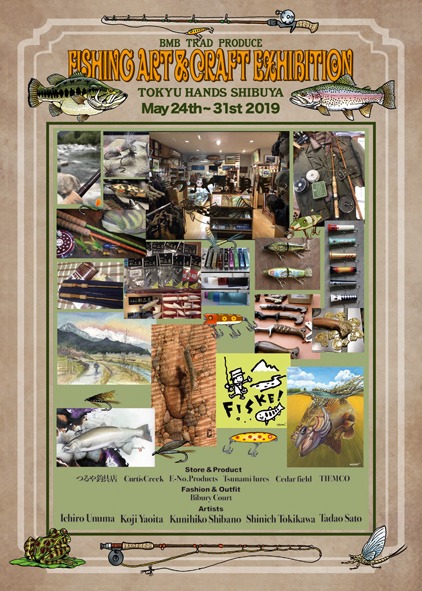 参加アーティストは僕を含めて5名。その他、ルアー・フライに関する商品展示盛りだくさん。ベースで販売している商品や未発表の作品やそこでしか買えない限定品もあります。本日(25日)はTIEMCOの島崎了氏によるタイイング教室・明日(26日)は伝説のルアービルダー(柏木重孝氏)によるハンドメイドルアー教室などの企画もあります。普段見られない原画・プロの技をご覧いただける絶好の機会です。是非、お誘い合わせの上ご来場ください!!